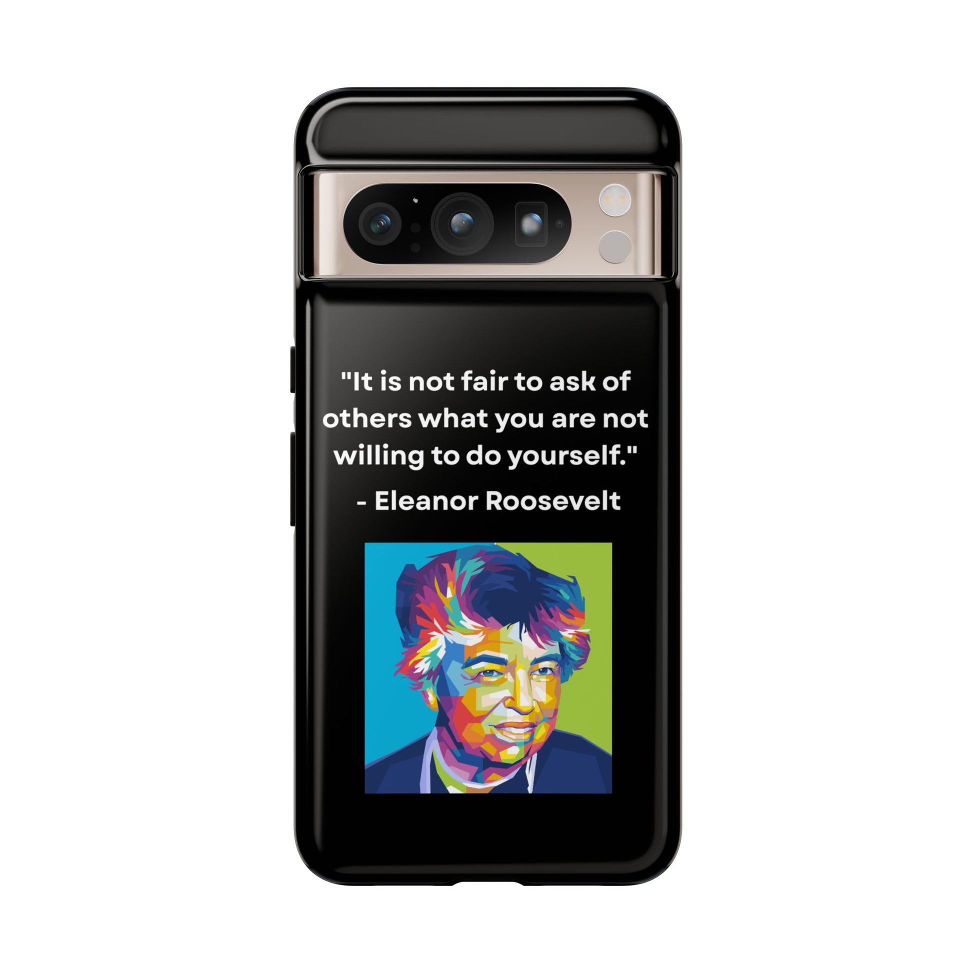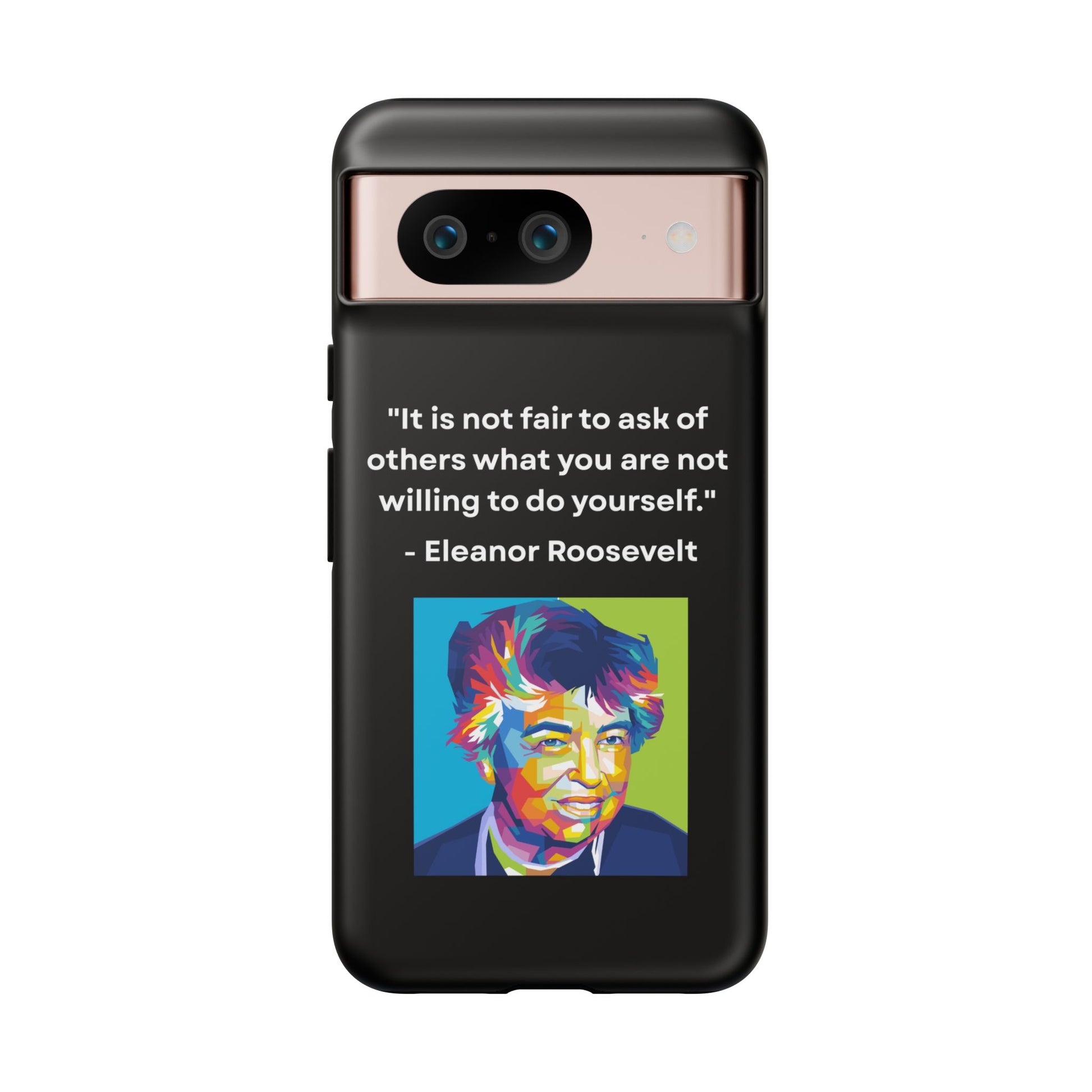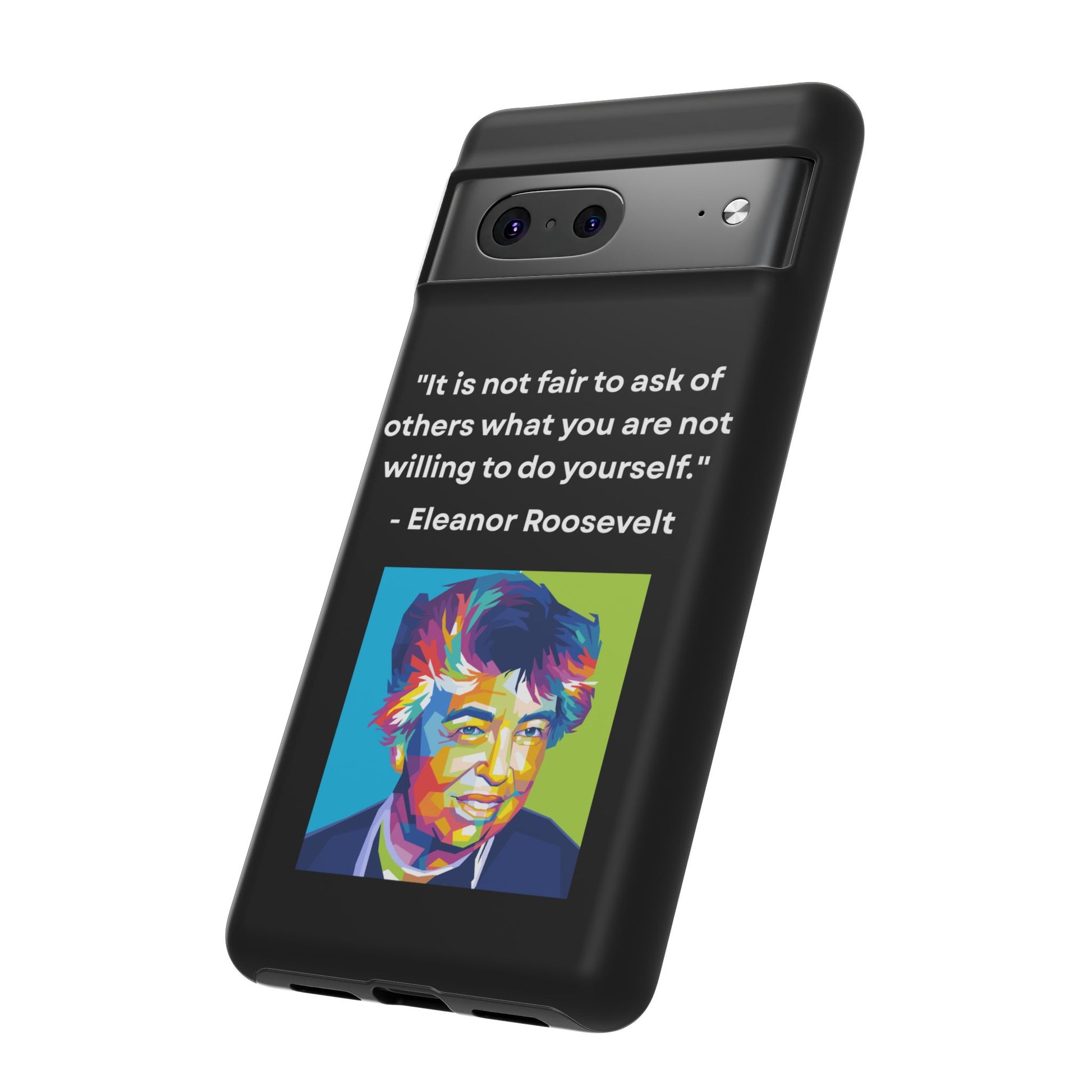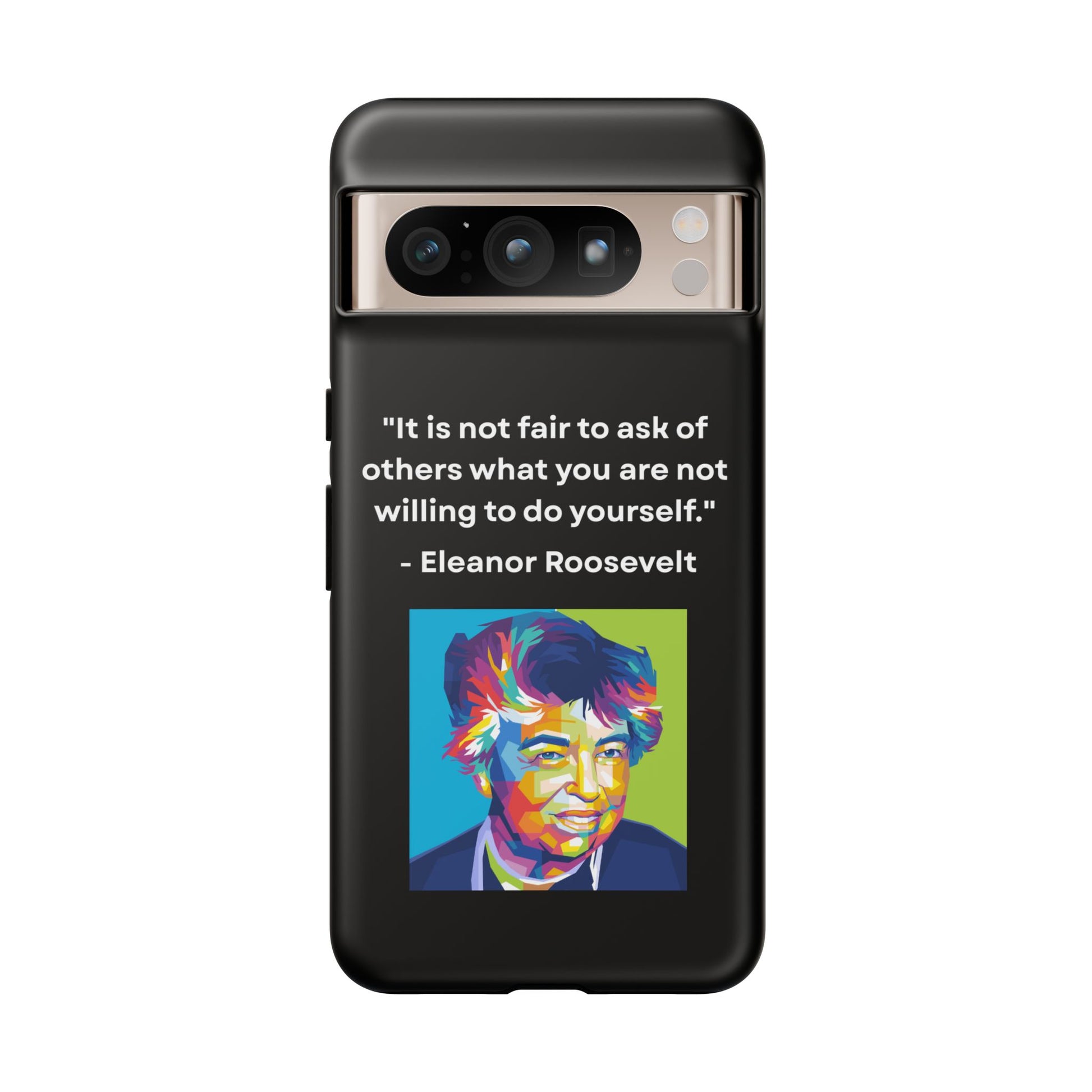Courage with conviction — always in hand. This striking case features a timeless quote from Eleanor Roosevelt: