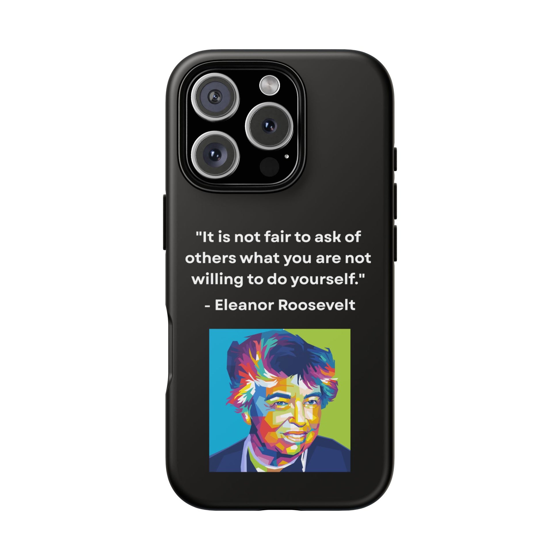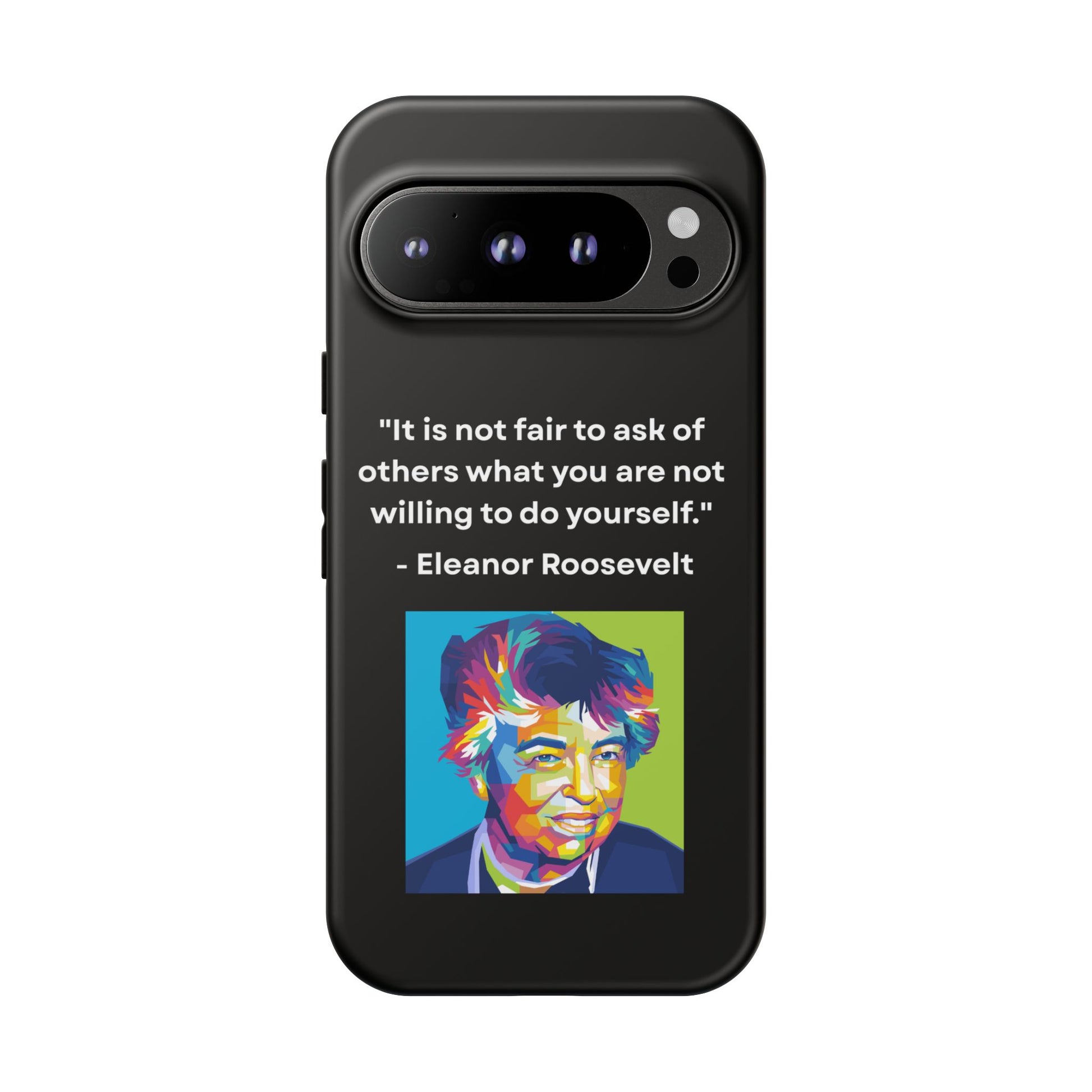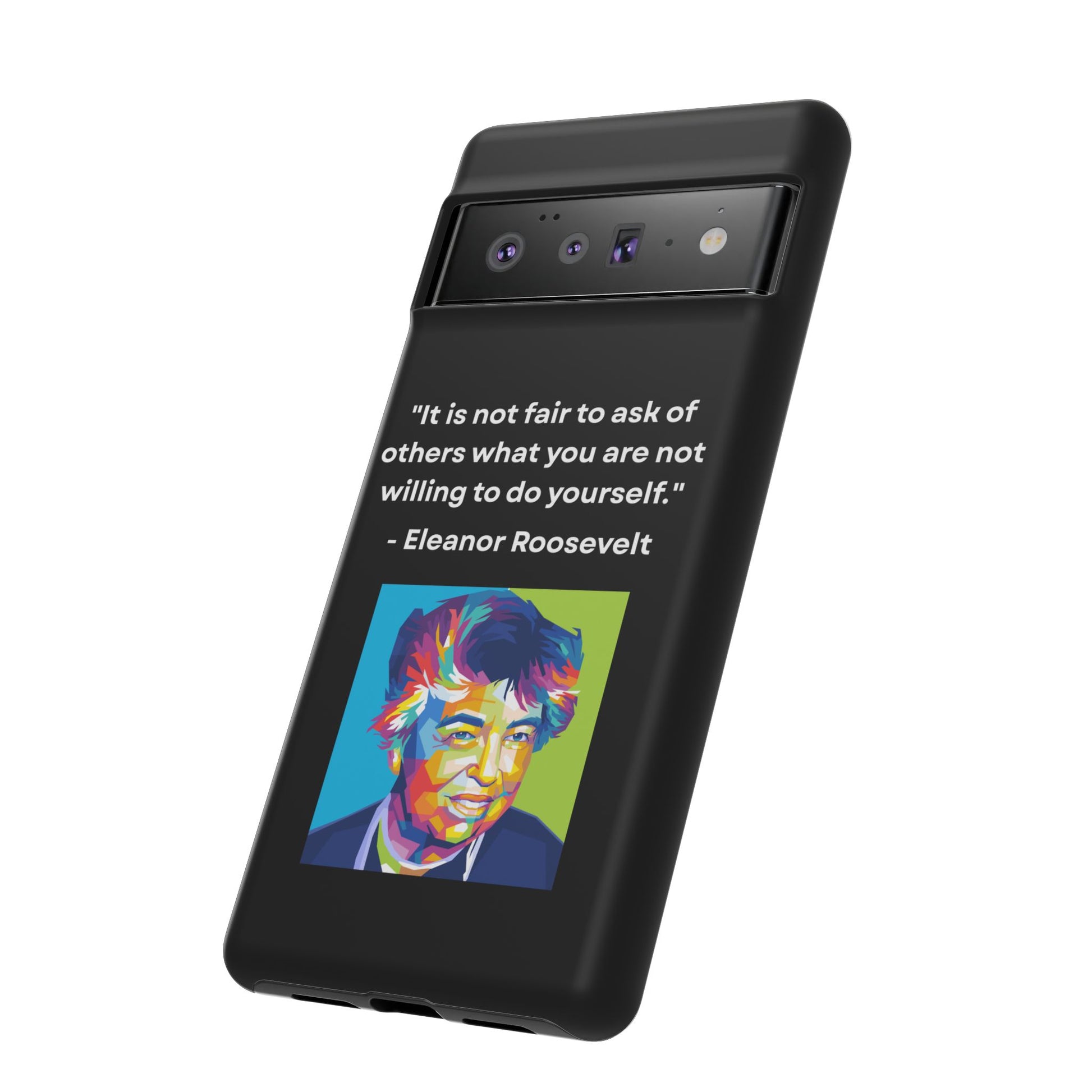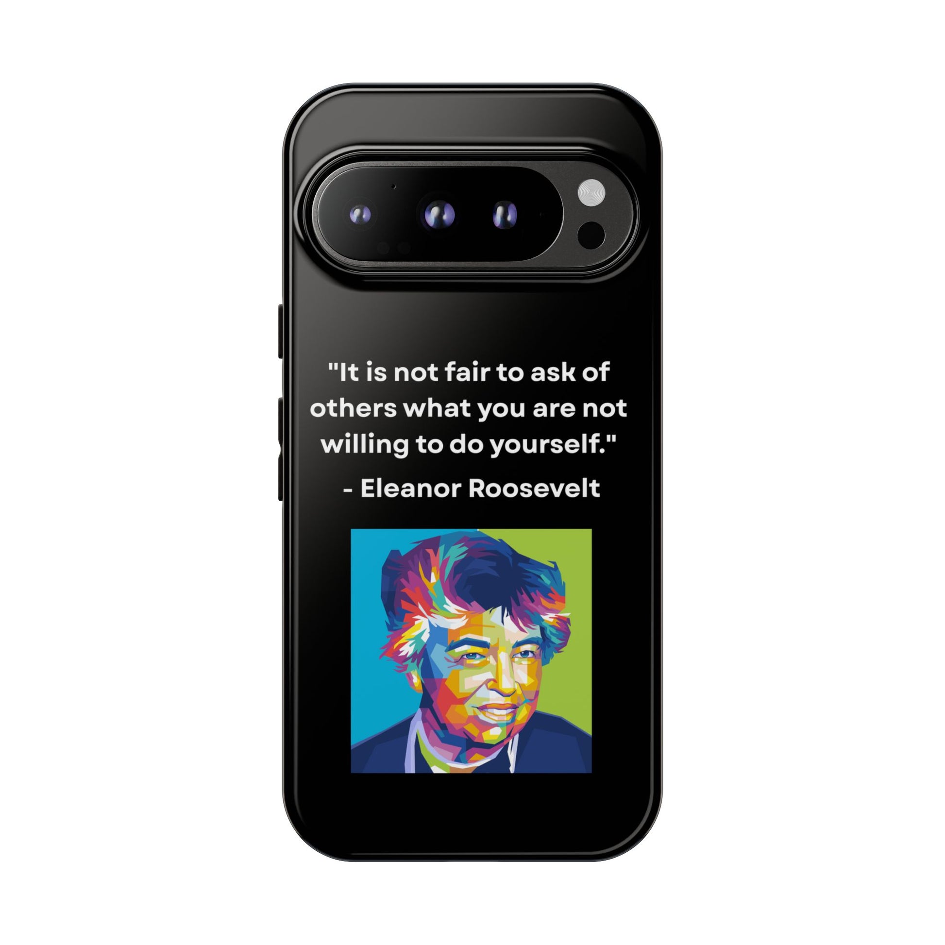 Courage with conviction — always in hand. This striking case features a timeless quote from Eleanor Roosevelt: