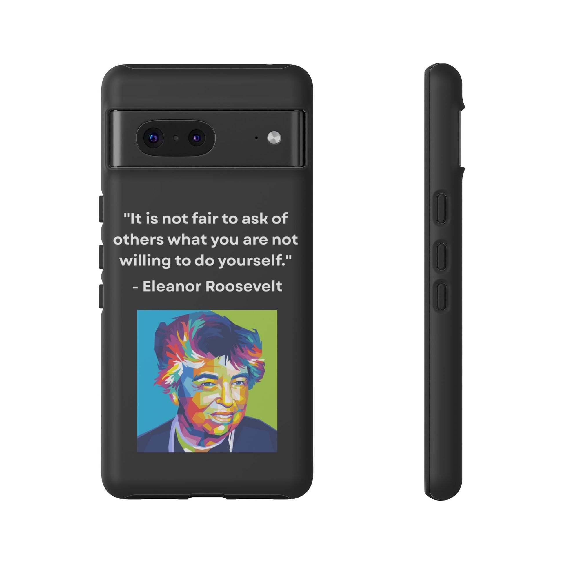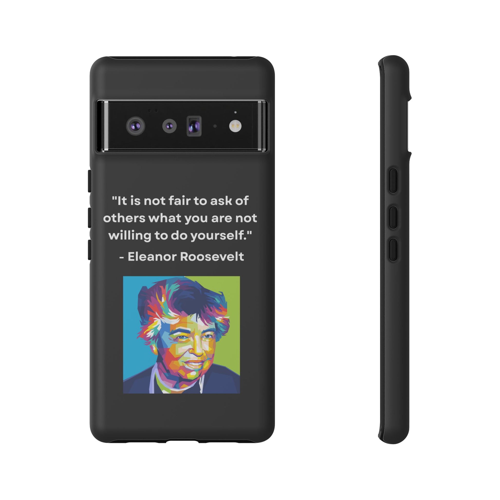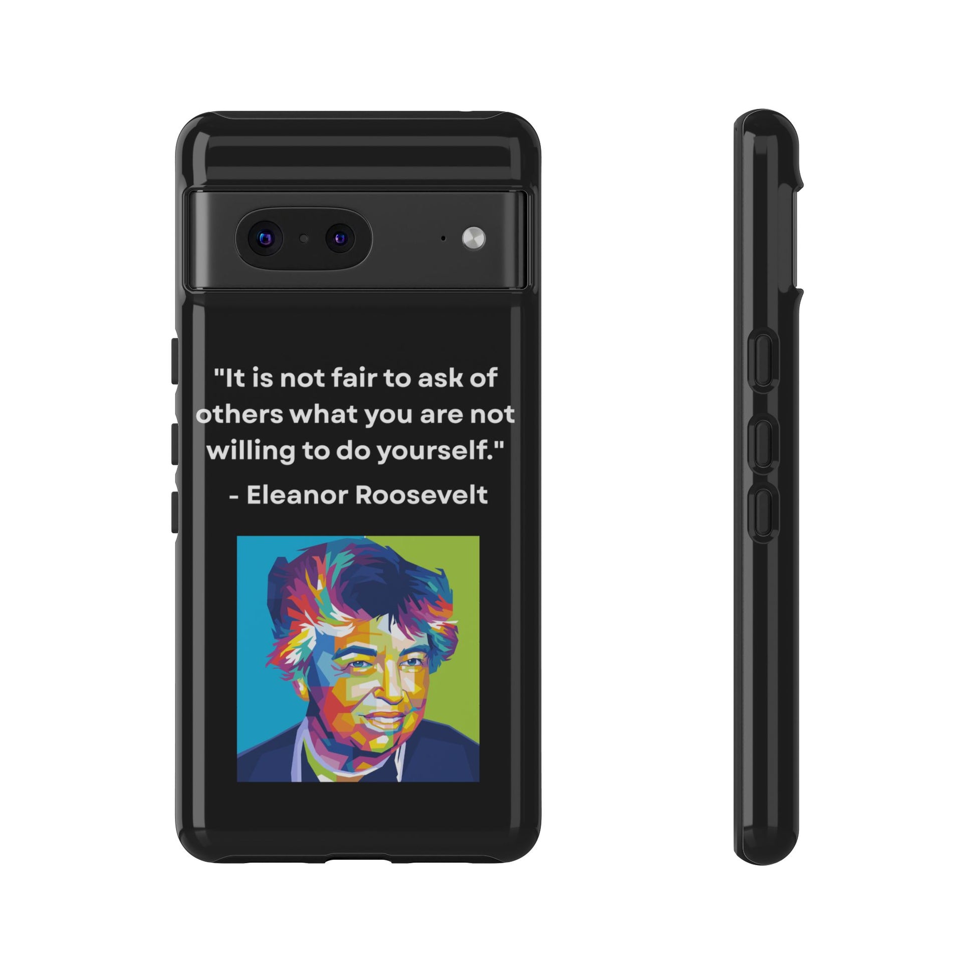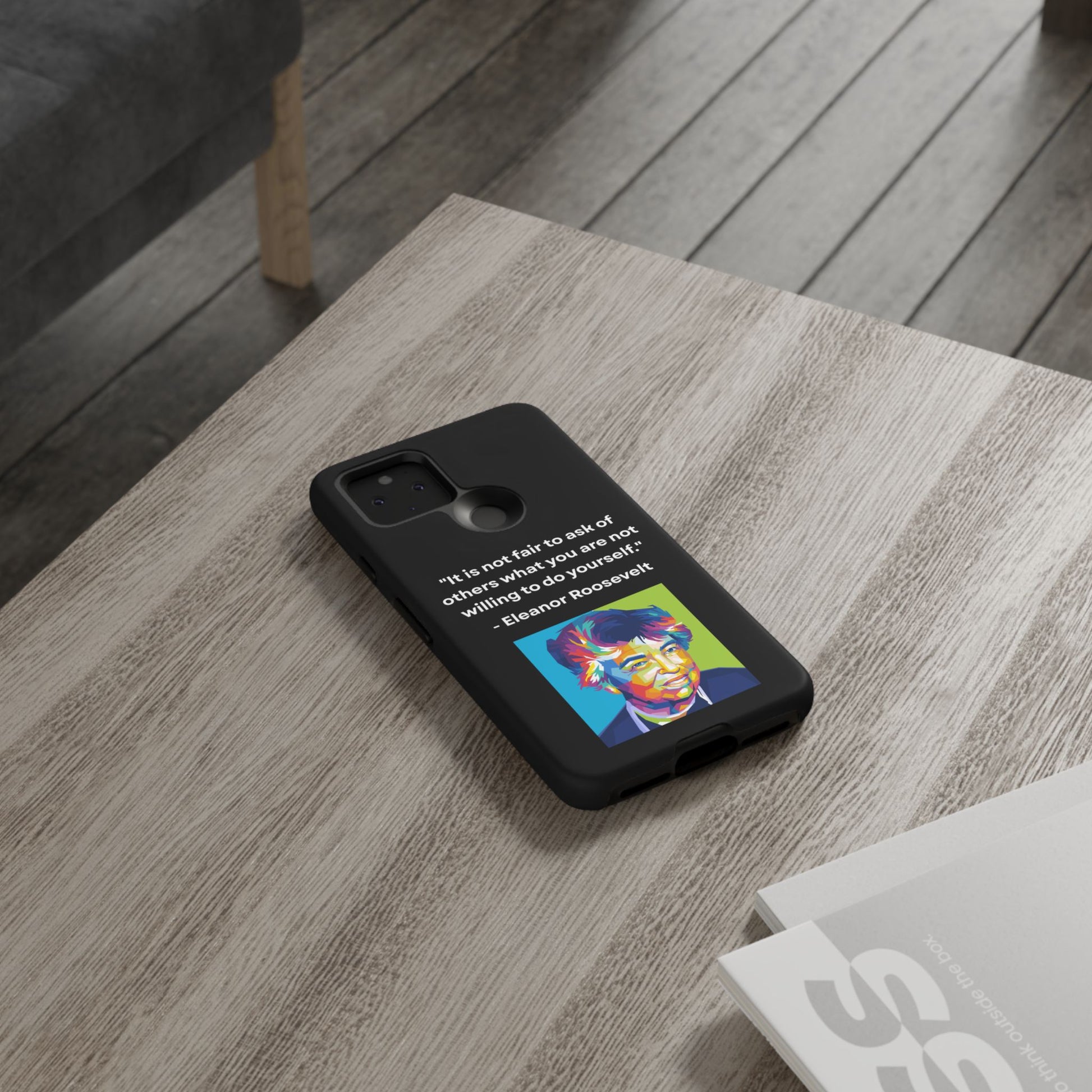 Courage with conviction — always in hand. This striking case features a timeless quote from Eleanor Roosevelt: