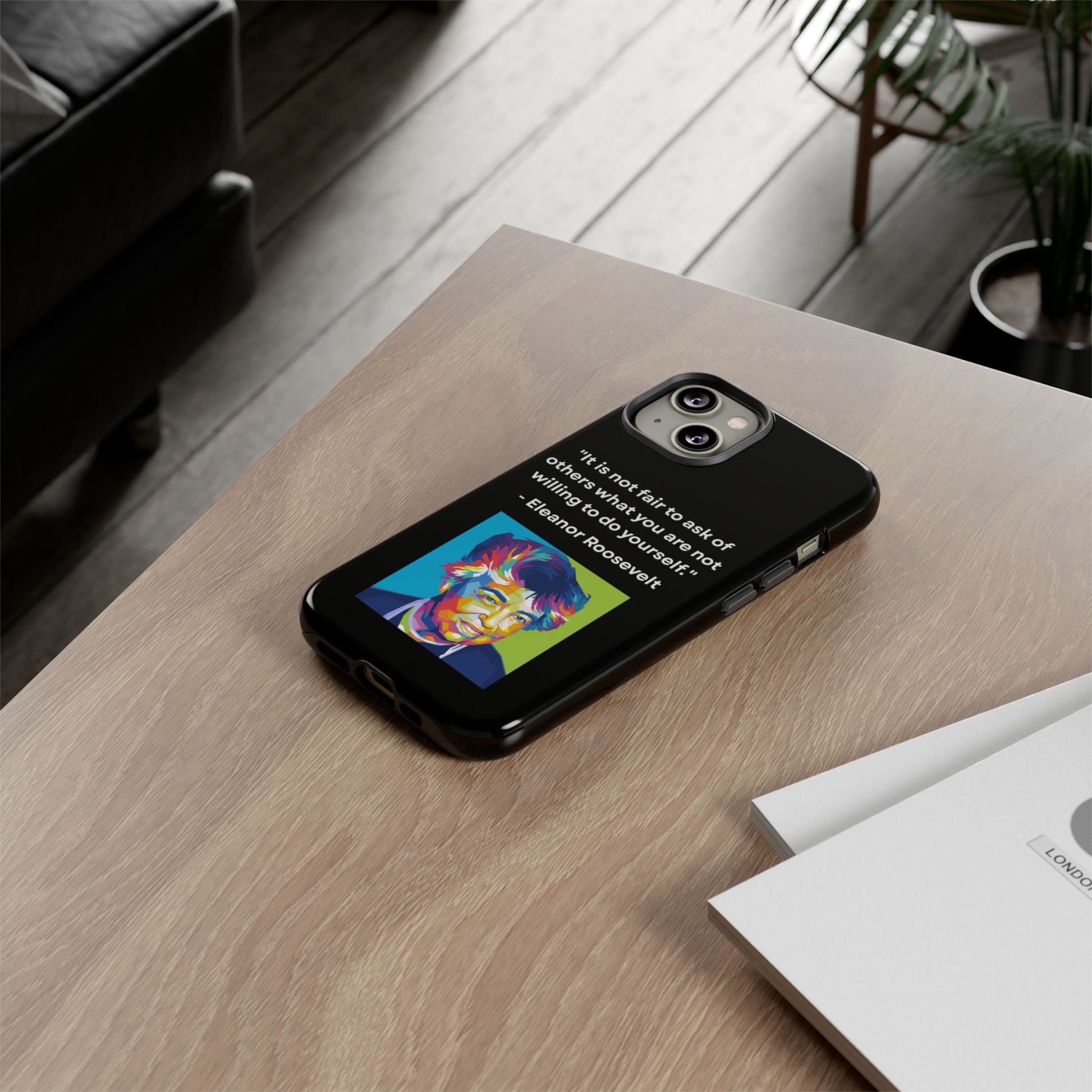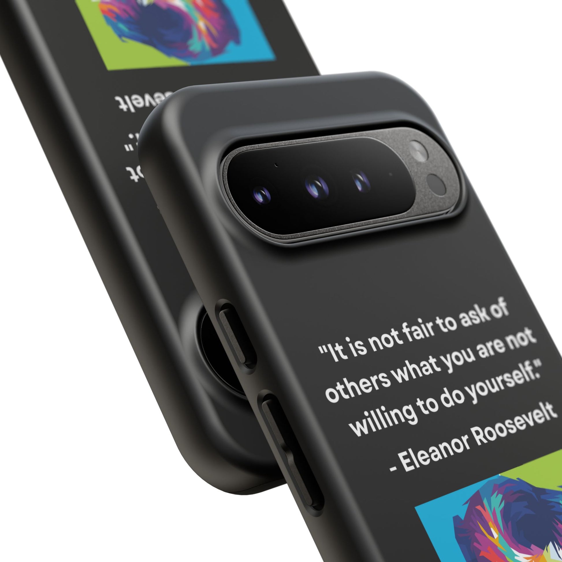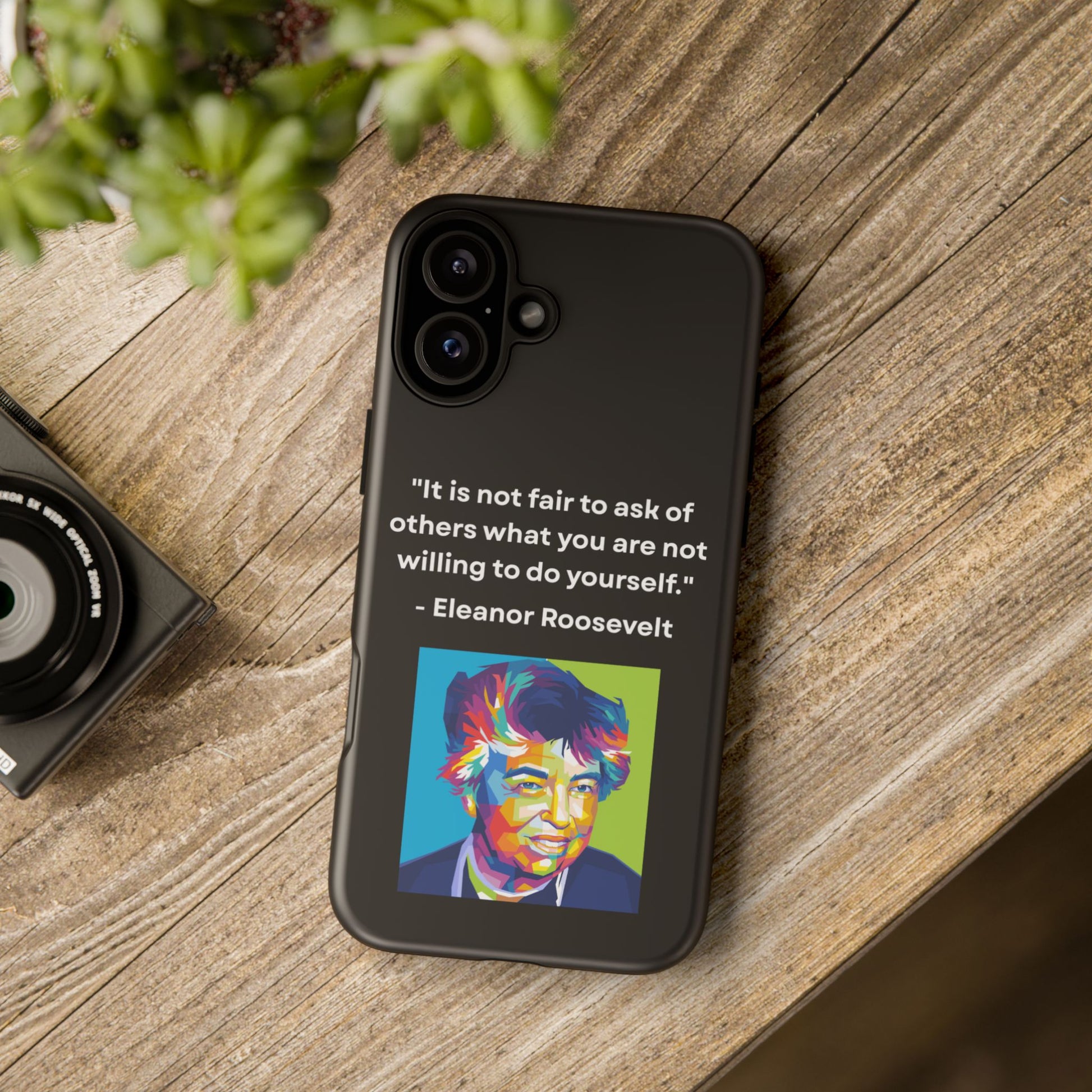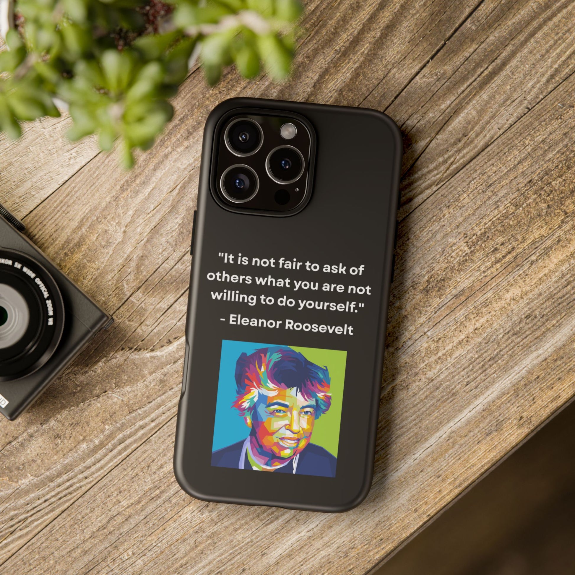 Courage with conviction — always in hand. This striking case features a timeless quote from Eleanor Roosevelt: